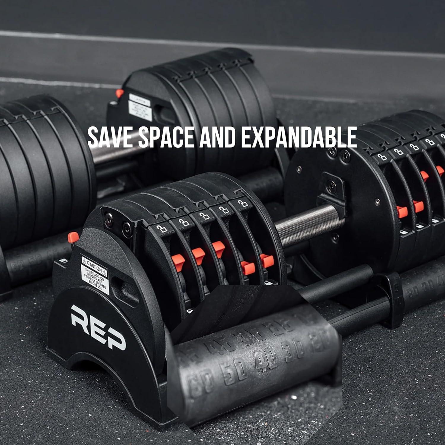 Rep Fitness Quickdraw Adjustable Dumbbells, Multiple weight ranges available including: 5-30, 5-40,5-50 and 5-60 lbs(5-50 lbs)