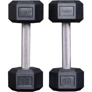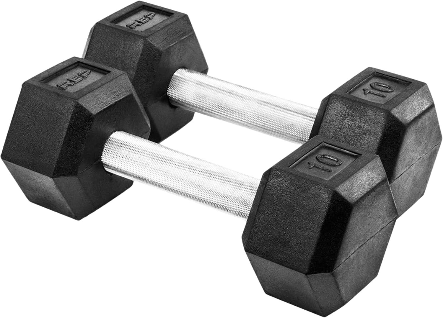 REP Fitness Urethane Coated Round Dumbbells, 5 to 100 lbs, Singles or Pairs, With or Without Rack, Steel Core, Rubber Encased, Chrome Handles, Professional Weights for Home Gym Strength Training(10 lb Pair)