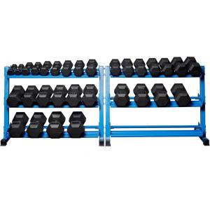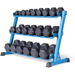 REP Fitness Rubber Hex Dumbbell Set, Adjustable Weight Pairs, Home Gym Equipment, Strength Training For Men Women, Black Coated Grips, Workout Rack Storage Optional, Heavy Lb Free Weights(5-50 lb set Blue rack)