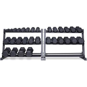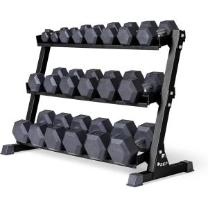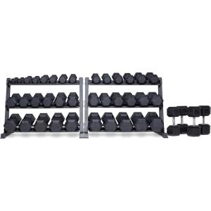REP Fitness Urethane Coated Round Dumbbells, 5 to 100 lbs, Singles or Pairs, With or Without Rack, Steel Core, Rubber Encased, Chrome Handles, Professional Weights for Home Gym Strength Training(5-100 lb set with 3 Tier Rack)