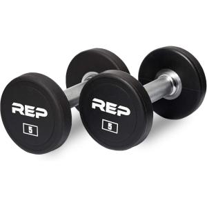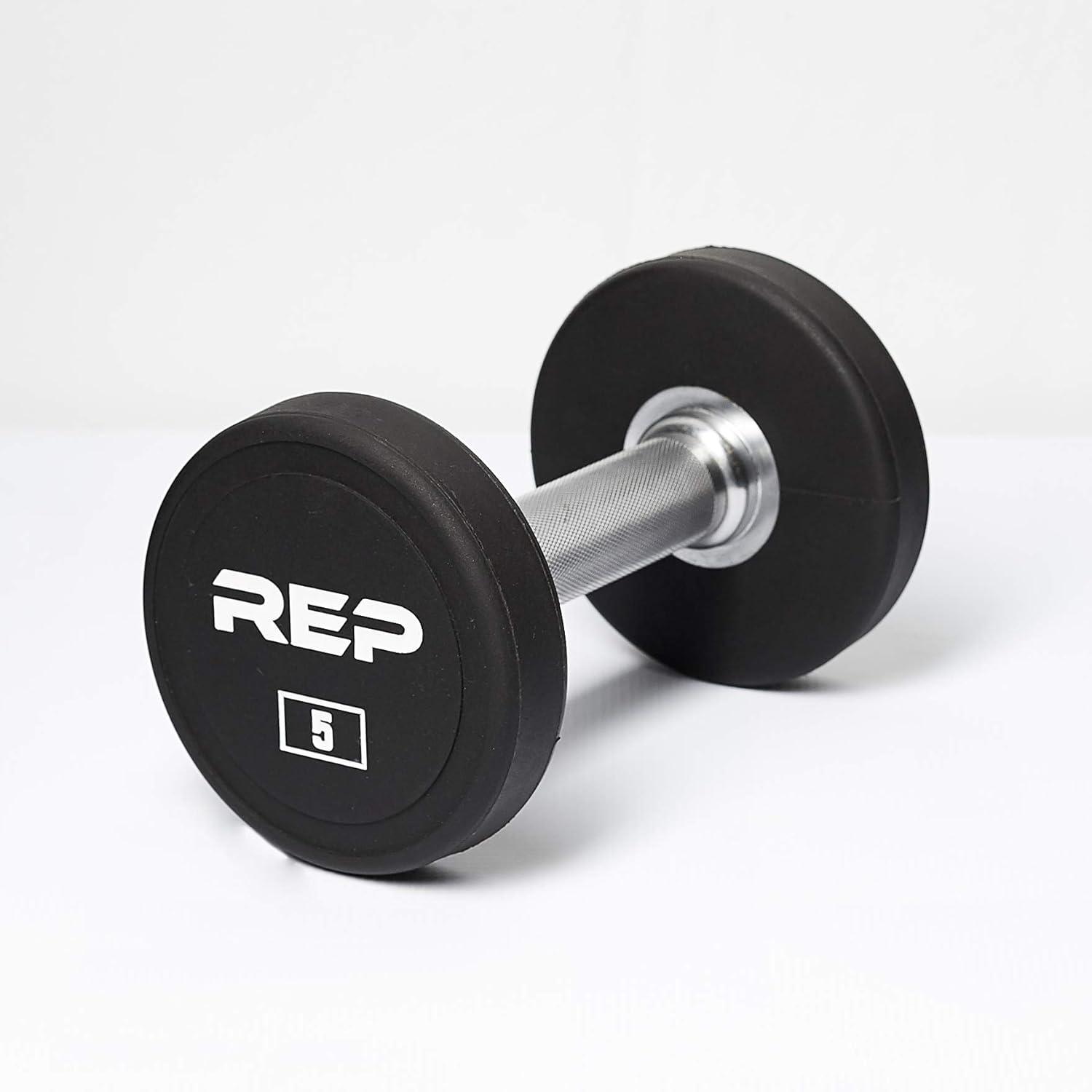 REP Fitness Urethane Coated Round Dumbbells, 5 to 100 lbs, Singles or Pairs, With or Without Rack, Steel Core, Rubber Encased, Chrome Handles, Professional Weights for Home Gym Strength Training(05 lb Pair)