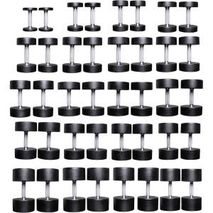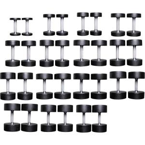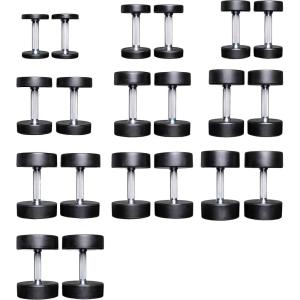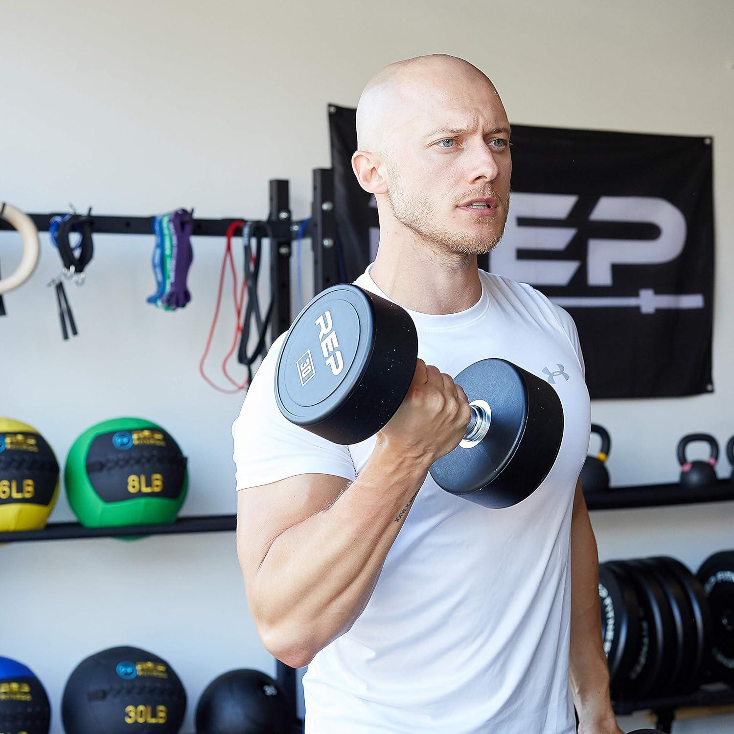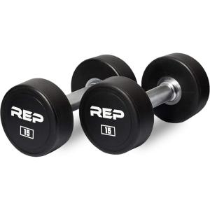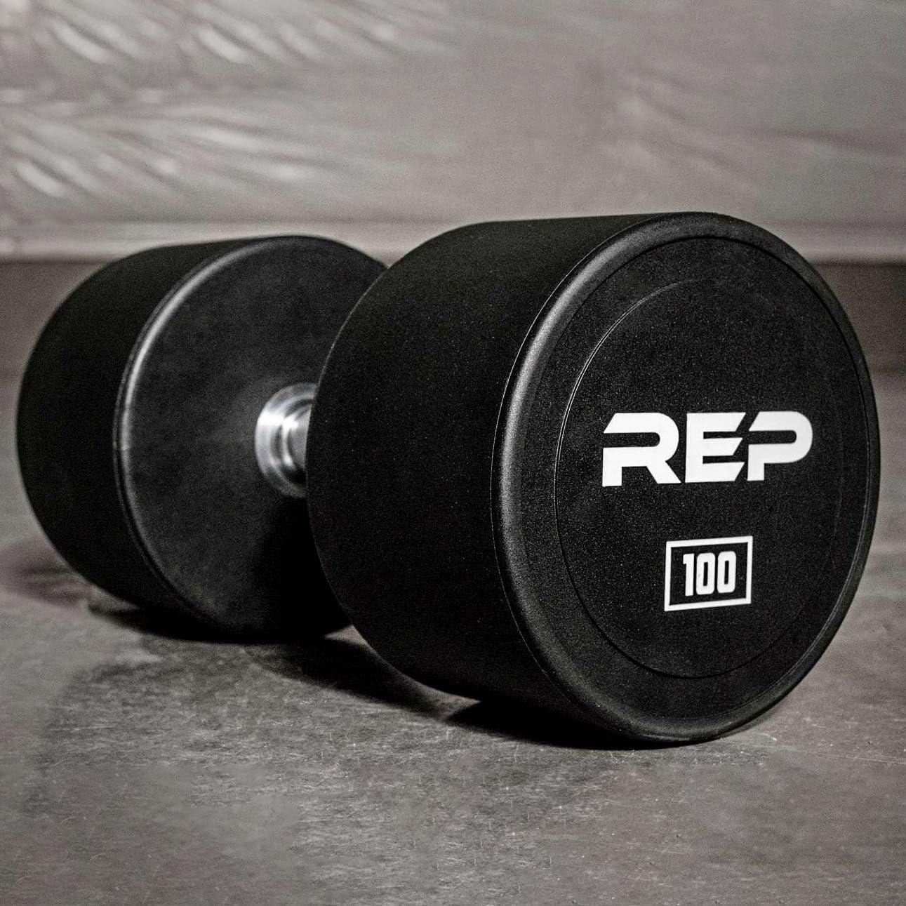 REP Fitness Urethane Coated Round Dumbbells, 5 to 100 lbs, Singles or Pairs, With or Without Rack, Steel Core, Rubber Encased, Chrome Handles, Professional Weights for Home Gym Strength Training(5-100 lb set)