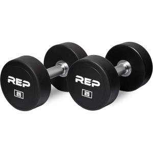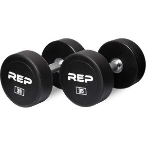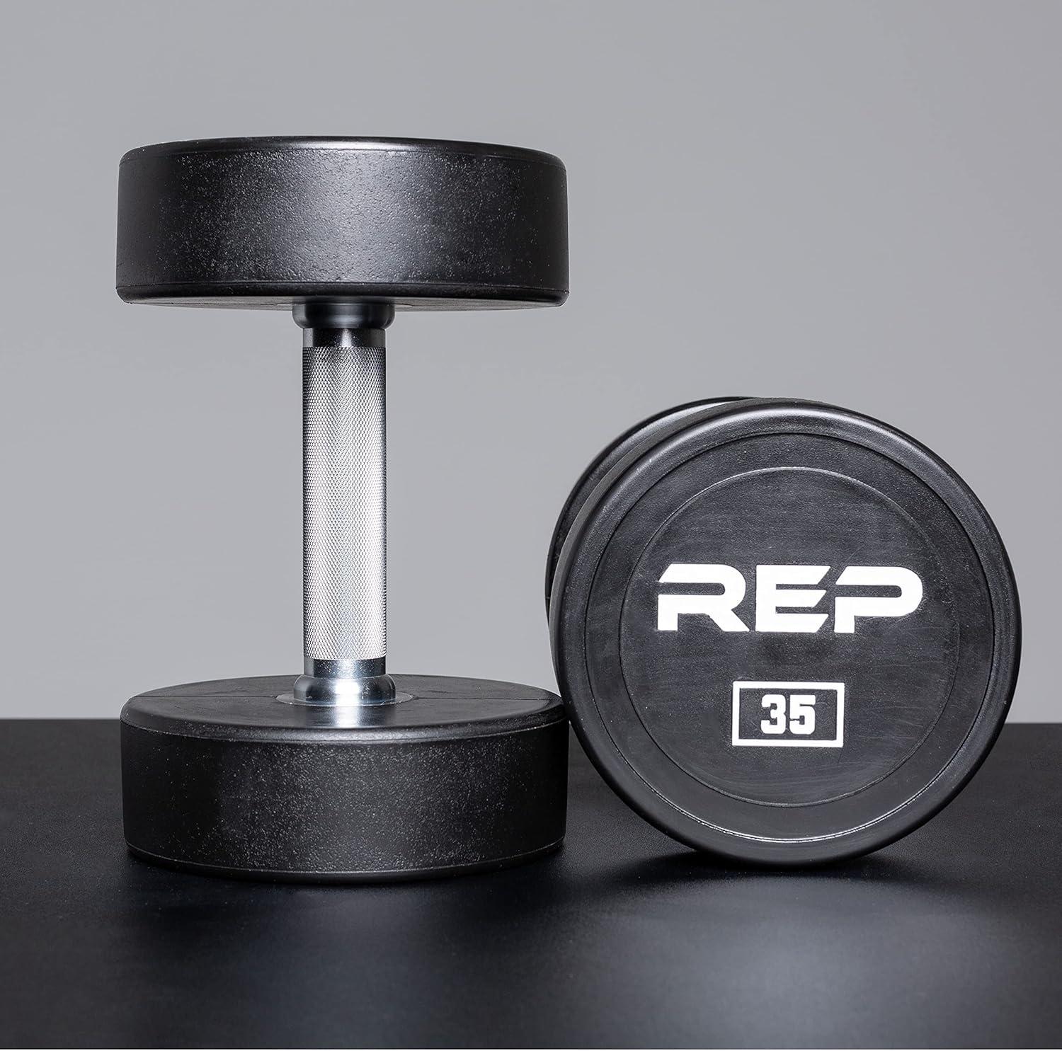 REP Fitness Urethane Coated Round Dumbbells, 5 to 100 lbs, Singles or Pairs, With or Without Rack, Steel Core, Rubber Encased, Chrome Handles, Professional Weights for Home Gym Strength Training(35 lb Pair)