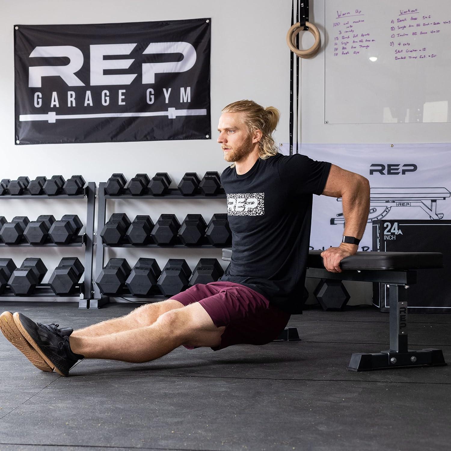 REP Fitness Flat Weight Bench, Heavy Duty Workout Bench For Home Gym, Folding Fitness Equipment For Strength Training, Adjustable Utility Platform For Dumbbells, Barbell, Lifting And Core Exercises(Metallic Black)
