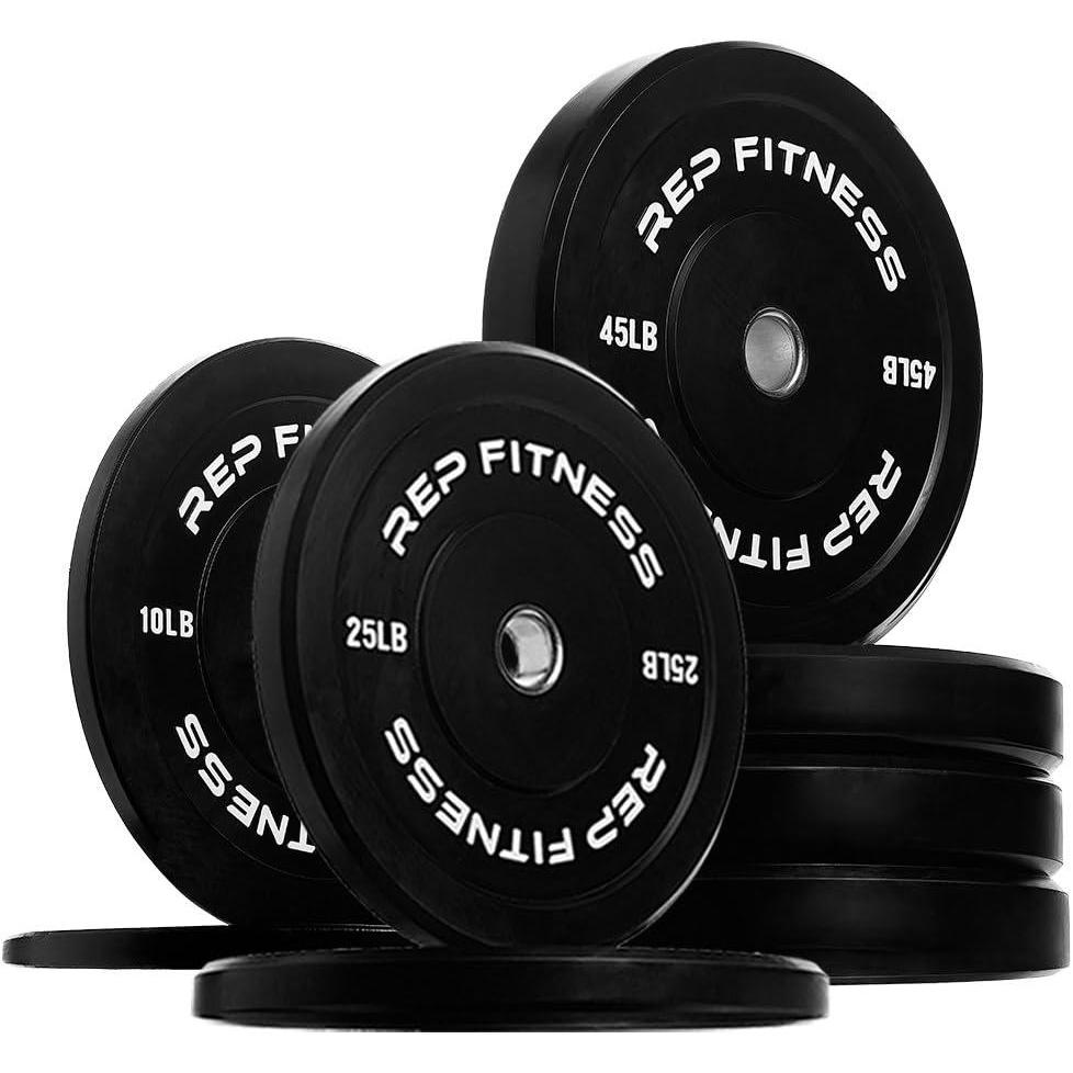 REP Fitness Rubber Bumper Plates, 5Lb to 370 lb Set Pairs, Olympic Standard Weights, Shock Absorbing Low Bounce Design, For Home Gyms, Fitness Centers, Strength Workouts, Barbell Use(250 LB Set)